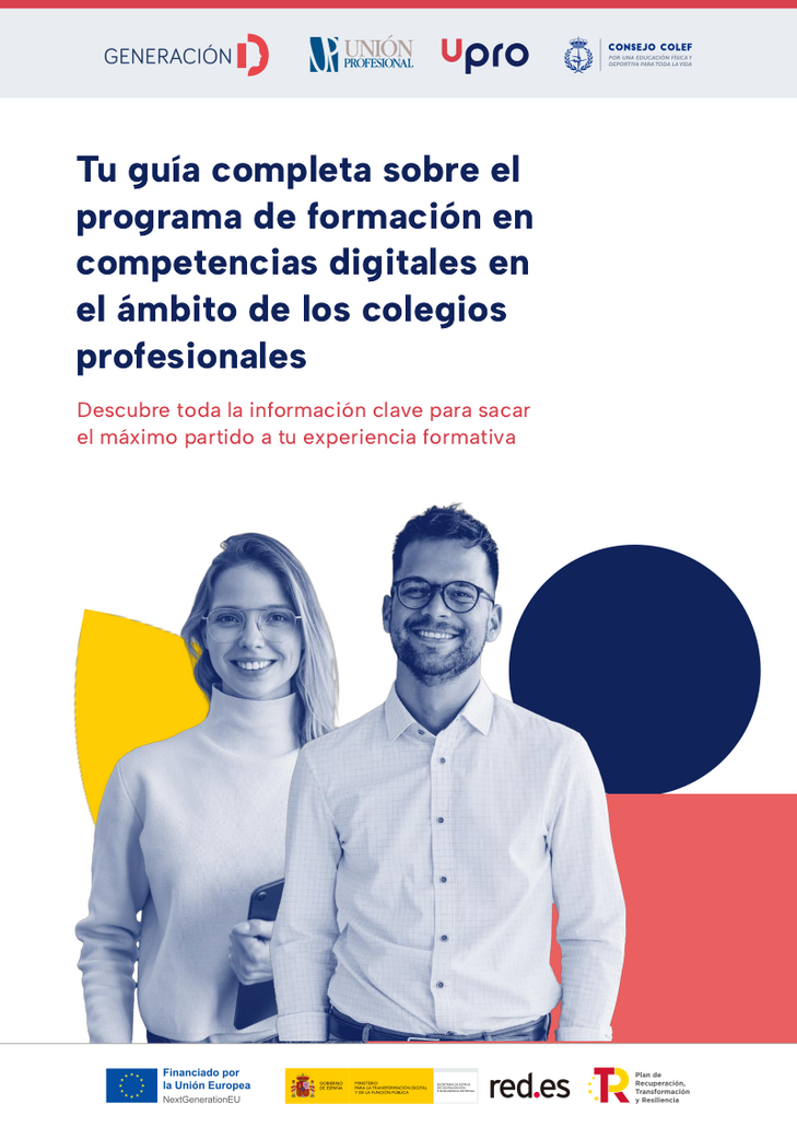 Estas actuaciones forman parte de la iniciativa Generación D, impulsada por Red.es, entidad adscrita al Ministerio para la Transformación Digital y de la Función Pública a través de la Secretaría de Estado de Digitalización e Inteligencia Artificial. Cuenta con un presupuesto de 200 millones a través de una subvención a Unión Profesional para el desarrollo de un programa de formación de competencias digitales en el ámbito de los colegios profesionales. Las actuaciones, que permitirán formar a cerca de 80.000 profesionales en materia de digitalización e IA, están financiadas por el Plan de Recuperación, Transformación y Resiliencia a través de los fondos Next Generation de la Unión Europea, en el marco de la inversión 3 del Componente 19, Plan Nacional de Competencias Digitales